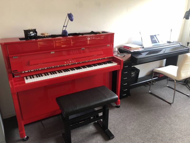 In mijn (grotere leskamer) heb ik de beschikking over een Kawaipiano en een digitale piano.